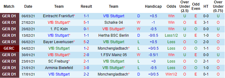 + Thống kê 10 trận gần nhất của Stuttgart