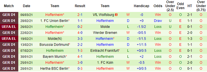 + Thống kê 10 trận gần nhất của Hoffenheim
