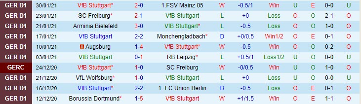 + Thống kê 10 trận gần nhất của Stuttgart