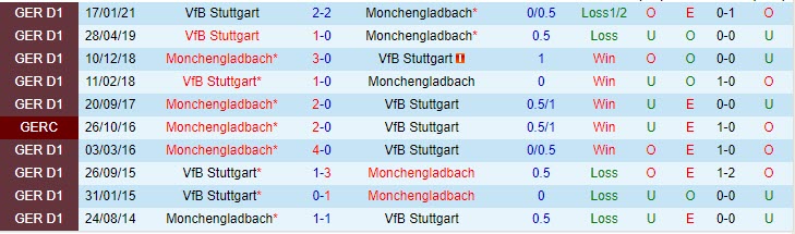 Phong độ và thống kê đối đầu Stuttgart vs M'gladbach gần đây: