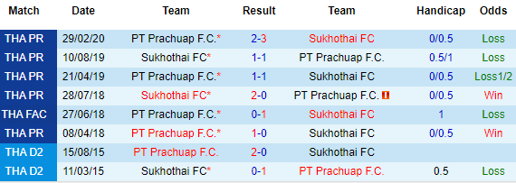 Màn trình diễn thời gian qua của Sukhothai là rất thất vọng. Tính ra thì CLB này toàn thua cả 6 trận liên tiếp mới đây, cả ở giải VĐQG lẫn Cúp FA. Phía đối diện, Prachuap ít nhiều cũng có nét khởi sắc, với việc đánh bại Suphanburi ở vòng gần nhất.