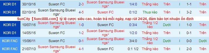 + Lịch sử đối đầu Suwon City vs Suwon Bluewings