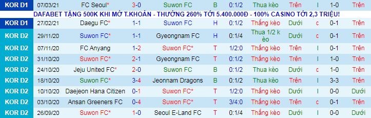 + Thống kê 10 trận gần nhất của Suwon City