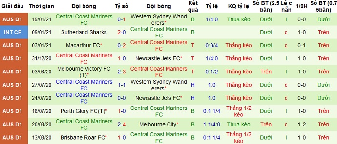 Trong 5 trận gần nhất Central Coast Mariners cũng có được 3 trận thắng, 1 trận hòa và 1 trận thua. Trên sân khách sau chuỗi thua 10 trận liên tiếp, Central Coast Mariners cũng khá bất ngờ khi có được 2 chiến thắng ở các lần du đấu gần nhất.