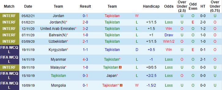 + Thống kê 10 trận gần nhất của Tajikistan