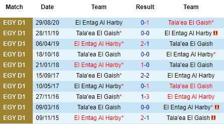 Tala'ea Al Jaish Cairo có ưu thế sân nhà nhưng về cơ bản, họ lại hơi lép vế trên phương diện đối đầu. Dẫu đã thắng ở lần chạm trán với Al Intagh Al Harbi gần nhất nhưng tính xa hơn, Tala'ea Al Jaish Cairo chỉ có 2 lần khải hoàn trong khi thua tới 5 ở 10 cuộc gặp gỡ với Al Intagh Al Harbi mới đây.