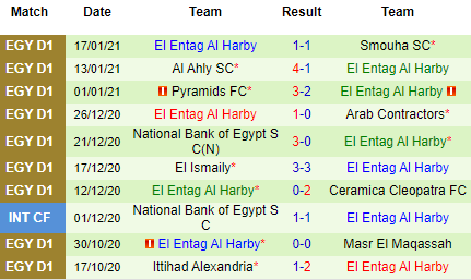 Tala'ea Al Jaish Cairo xếp cuối và kém Al Intagh Al Harbi 1 điểm. Khoảng cách giữa đôi bên tới vị trí an toàn chưa lớn và mục tiêu 2 đội hướng đến là thoát khỏi khu vực cầm đèn đỏ. Kẻ thắng trận này khả năng sẽ tạm thời thoát khỏi nhóm nguy hiểm.