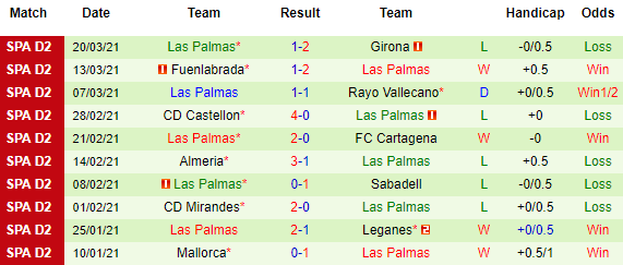 + Thống kê 10 trận gần nhất của Las Palmas