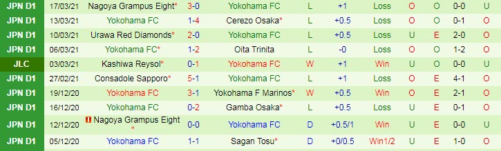 Nếu so với đối thủ, Yokohama FC đang có khởi đầu mùa giải 2021 đáng quên khi thua cả 5 trận đã đá. Với con số không tròn trĩnh, Yokohama FC xứng đáng đứng ở vị trí đội sổ .