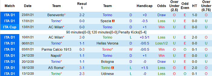 Những kết quả của Torino thời gian qua đã trở nên tích cực hơn. Họ bất bại 7/8 trận đấu gần nhất thuộc khuôn khổ Serie A. Thành tích này tốt hơn đáng kể so với việc thua tới 4/5 trận trước đó.