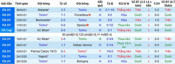 Chuỗi trận không thắng của Torino đã kéo dài lên con số 7 trận liên tiếp gần đây. Thế nhưng trong 6 vòng đấu gần nhất vừa qua tại Serie A, Torino cũng chỉ để thua 1 trận, hòa cả 5 trận còn lại. Trên sân nhà Torino cũng đang hòa trong cả 4 trận gần nhất.