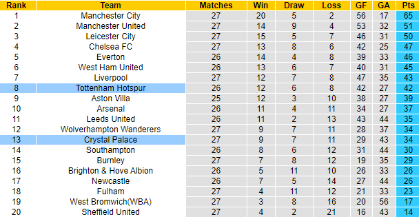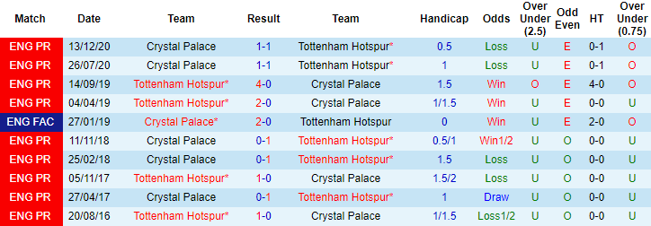 Crystal Palace là đối thủ không hề dễ chịu với Tottenham. 2 trận đối đầu Spurs gần đây, Crystal Palace đều có được 1 điểm với tỷ số hòa 1-1. Lần tái đấu sắp tới, Crystal Palace tiếp tục hứa hẹn tạo ra nhiều khó khăn cho đoàn quân của HLV Jose Mourinho.