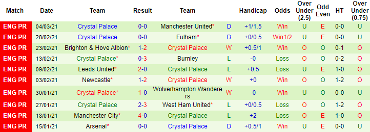 + Thống kê 10 trận gần nhất của Crystal Palace