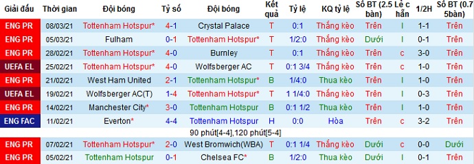 + Thống kê 10 trận gần nhất của Tottenham