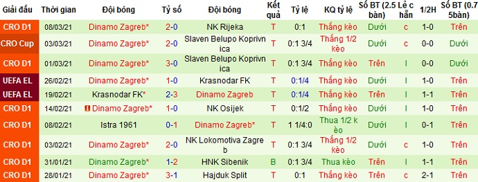 + Thống kê 10 trận gần nhất của Dinamo Zagreb