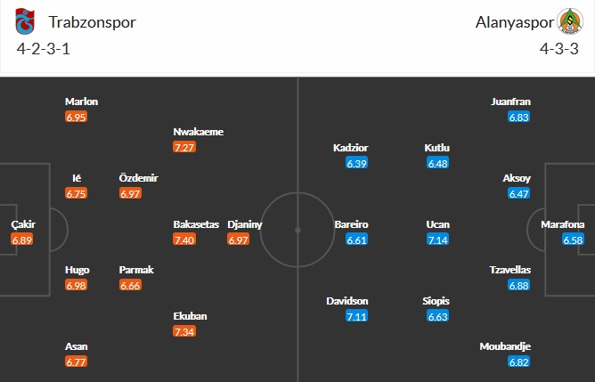 Đội hình dự kiến Trabzonspor vs Alanyaspor