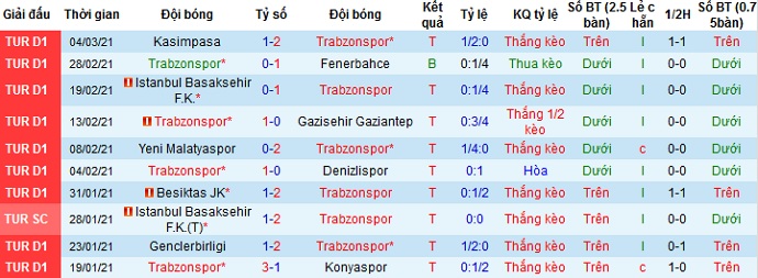 + Thống kê 10 trận gần nhất của Trabzonspor
