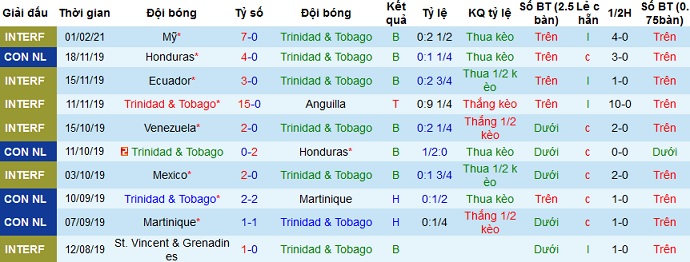 Thế nhưng thành tích của Trinidad & Tobago là khá kém cỏi khi trong 7 trận gần nhất đội bóng chỉ thắng được 1 lần duy nhất trước đội bóng không tên tuổi Anguilla với tỷ số 15-0, còn để thua ở cả 6 trận còn lại.