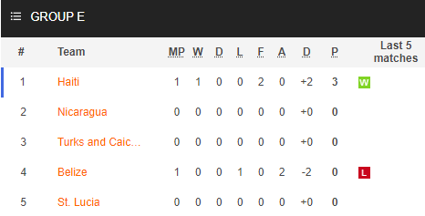 Turks & Caicos cùng Nicaragua ở bảng E, nơi còn có Haiti, Belize và St. Lucia. Nhìn vào tên tuổi của 5 đội thì Nicaragua và Haiti được cho là sẽ cạnh tranh vị trí số 1. Đụng độ với đối thủ dưới cơ hoàn toàn như Turks & Caicos là cơ hội để Nicaragua có khởi đầu suôn sẻ.