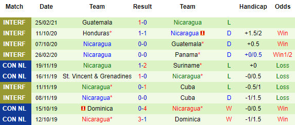 + Thống kê 10 trận gần nhất của Nicaragua