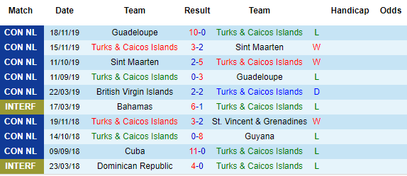 + Thống kê 10 trận gần nhất của Turks & Caicos