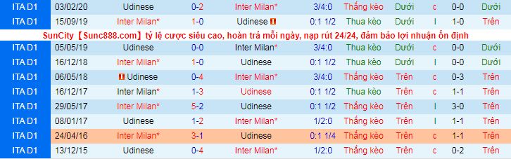 + Soi tỷ lệ kèo tài xỉu: Trong 5 lần đối đầu với Inter trước đây, chưa 1 lần nào Udinese ghi được bàn thắng cho mình vào lưới đội bóng thành Milan.. Điều đáng nói hơn là đến 4/5 trận này có kết quả dưới 3 bàn/trận. Trên sân nhà, chỉ vỏn vẹn 2/5 trận gần nhất Udinese có được cho mình những bàn thắng. Chọn Xỉu.