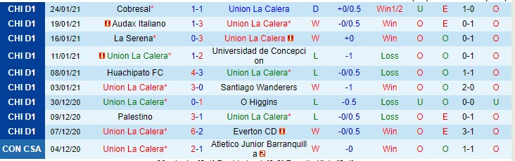 + Thống kê 10 trận gần nhất của Union La Calera