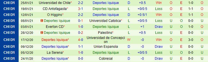 + Thống kê 10 trận gần nhất của Deportes Iquique