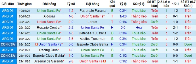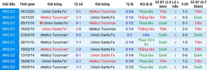 Ở 5 trận gần nhất thành tích của Unión Santa Fe còn có phần tốt hơn với 2 trận thắng, 1 trận hòa và 2 trận thua trong khi Atletico Tucumán chỉ có được 1 trận thắng, 1 trận hòa và để thua 3 trận.