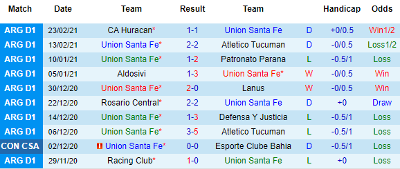 + Thống kê 10 trận gần nhất của Union Santa Fe