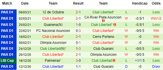 + Thống kê 10 trận gần nhất của Libertad