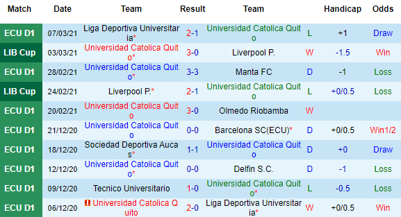 + Thống kê 10 trận gần nhất của Univ Catolica Quito