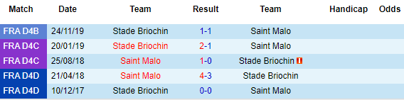 + Lịch sử đối đầu US Saint-Malo vs Briochin