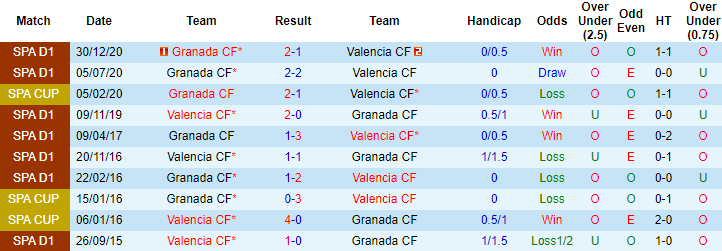 3 trận tiếp khách gần đây, Bầy dơi toàn thắng cả về tỷ số và kèo châu Á. Trong quá khứ, những trận đối đầu Granada trên sân nhà, Valencia cũng luôn mang về niềm vui cho người hâm mộ. Làm khách trên sân của Valencia 8 trận trước đây, Granada thua 7, hòa 1.