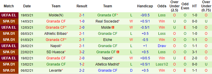 + Thống kê 10 trận gần nhất của Granada
