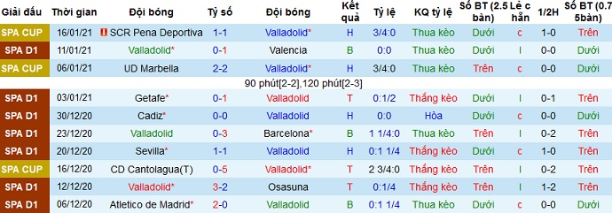Trong 5 trận đấu gần đây Valladolid có được 3 trận thắng, 1 trận hòa và 1 trận thua nhưng trong đó có 2 chiến thắng tại cúp nhà vua trước các đội bóng hạng dưới. Tính riêng tại La Liga, đội bóng chỉ có được 1 trận thắng, 2 trận hòa và 2 trận thua ở 5 vòng đấu gần nhất.