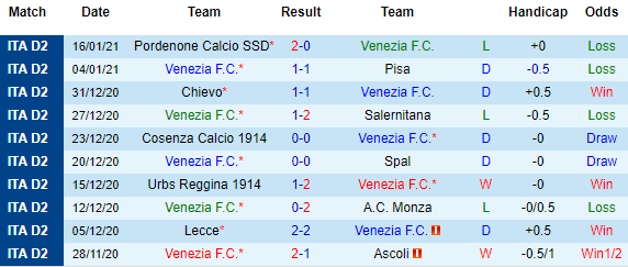 + Thống kê 10 trận gần nhất của Venezia