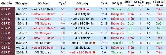 Trong giai đoạn lượt đi VfB Stuttgart đã giành chiến thắng ngay trên sân đối phương với tỷ số 2-0. Trước đó trong cả 6 lần chạm trán phần thắng đều thuộc về đội chủ nhà. Bởi vậy với việc Hertha Berlin đang có phong độ thi đấu sa sút, chọn cửa trên ở trận đấu này hoàn toàn là điều hợp lý.