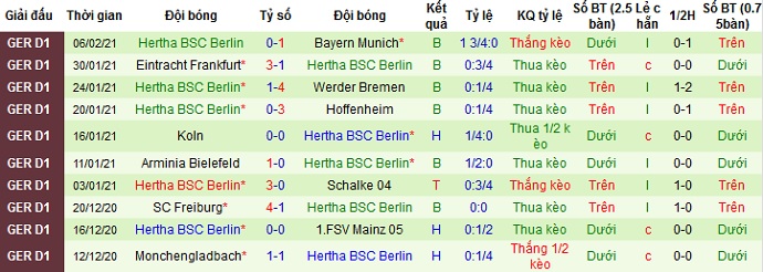 + Thống kê 10 trận gần nhất của Hertha Berlin