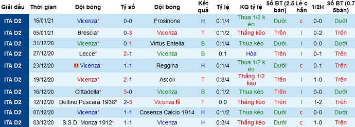 + Thống kê 10 trận gần nhất của Vicenza
