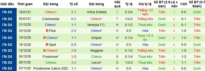 + Thống kê 10 trận gần nhất của Chievo