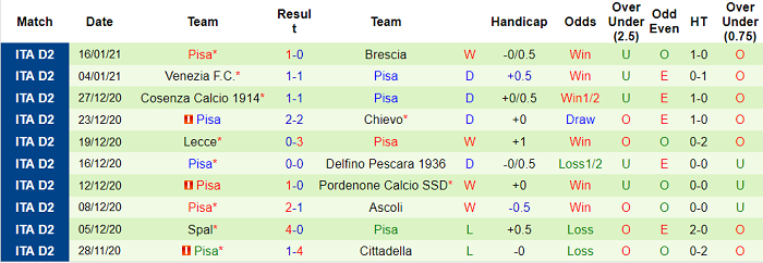 - Thống kê 10 trận gần nhất của Pisa