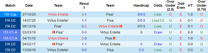 Pisa hòa cả 2 trận sân khách vừa qua thuộc khuôn khổ Serie B. Trong khi đó, Virtus Entella toàn thắng cả 2 trận sân nhà gần nhất tại giải đấu số 2 xứ sở mỳ ống. Lựa chọn Virtus Entella vì thế hứa hẹn mang đến sự an toàn hơn cho giới đầu tư.