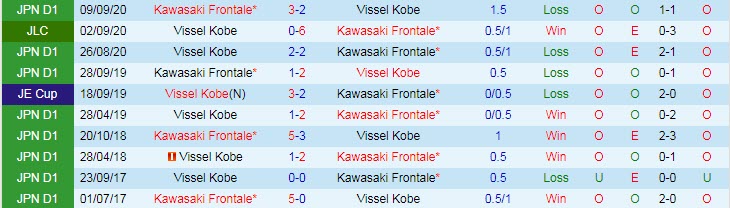 Phong độ và thống kê đối đầu Vissel Kobe - Kawasaki Frontale gần đây: