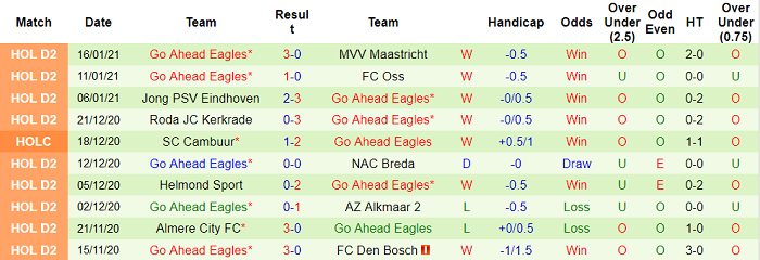 - Thống kê 10 trận gần nhất của Go Ahead Eagles