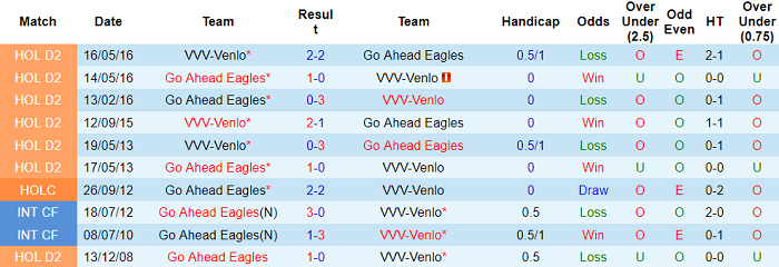 Phong độ và thống kê đối đầu VVV Venlo vs Go Ahead Eagles gần đây