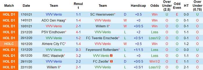 - Thống kê 10 trận gần nhất của VVV Venlo
