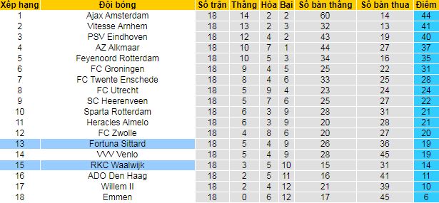 Đội chủ nhà đang thi đấu thất vọng và họ đang liên tiếp để mất điểm ở các vòng đấu gần đây. Hiện tại Waalwijk đã rơi xuống vị trí thứ 15 trên BXH với chỉ 14 điểm sau 18 vòng đấu. Khoảng cách giữa họ và nhóm xuống hạng chỉ là 3 điểm.