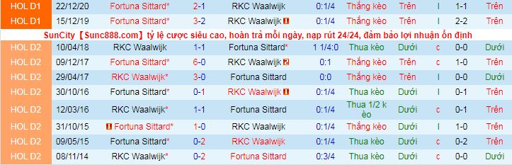 + Soi tỷ lệ kèo châu Á: Phong độ quá tệ hại khiến cho RKC Waalwijk dù có lợi thế sân nhà vẫn không thể có được nhiều sự chủ động trước Fortuna Sittard trong trận đấu này qua mức TLCA chỉ là 0:0. Thậm chí, đội khách mới là những người chấp tiền cho thấy giới đầu cơ không đánh giá cao khả năng thắng trận của Waalwijk. Ngoài ra Fortuna Sittard cũng thường thi đấu hay trước Waalwijk khi bất bại cả 4 lần đụng độ gần nhất. Chọn Fortuna Sittard!