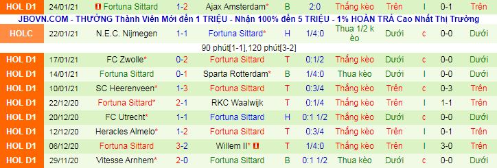 Bên kia sân, Fortuna Sittard chỉ phải nhận 2 thất bại ở 8 vòng đấu gần đây, Fortuna Sittard đang cho thấy sự vươn lên mạnh mẽ sau một giai đoạn đầu mùa tương đối lận đận. 19 điểm có được sau 18 vòng đấu đã giúp cho họ bứt lên so với nhóm cầm đèn đỏ với khoảng cách 8 điểm.
